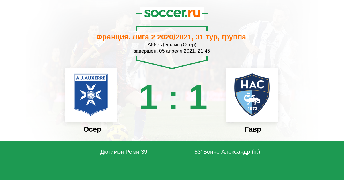 39' (1:0) Дюгимон Реми (21) (Отре Матиас (29))