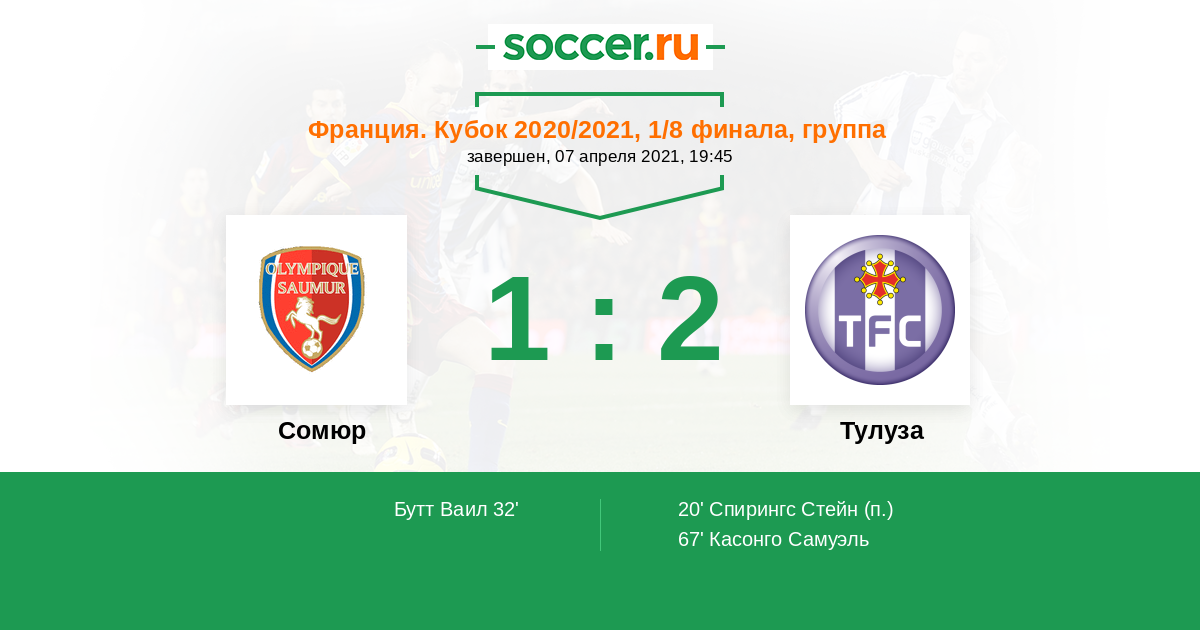 Протокол матча Сомюр против Тулуза