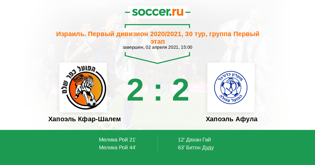 Протокол матча Хапоэль Кфар-Шалем против Хапоэль Афула