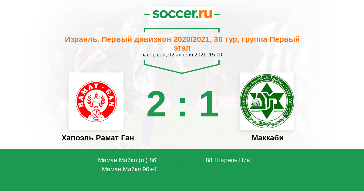Протокол матча Хапоэль Рамат Ган против Маккаби