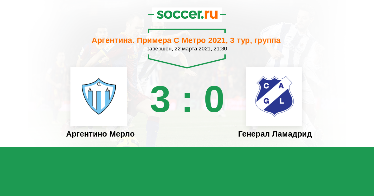 Аргентина. Примера С Метро 04.07.2022 Генерал Ламадрид Логотип Генерал Ламадрид (Буэнос-Айрес) 2:3 Логотип футбольный клуб Аргентино Мерло Аргентино Мерло