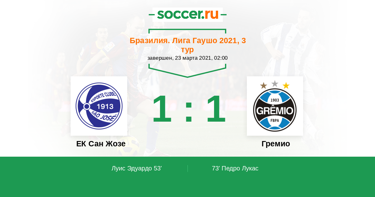 Протокол матча ЕК Сан Жозе против Гремио
