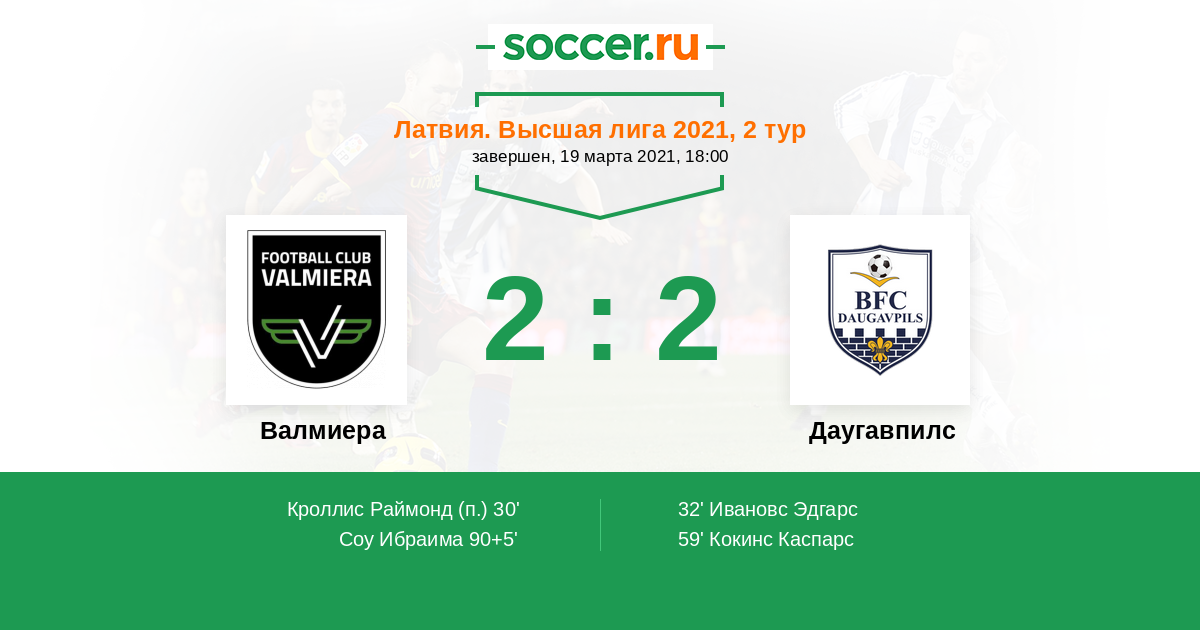 Протокол матча Валмиера против Даугавпилс