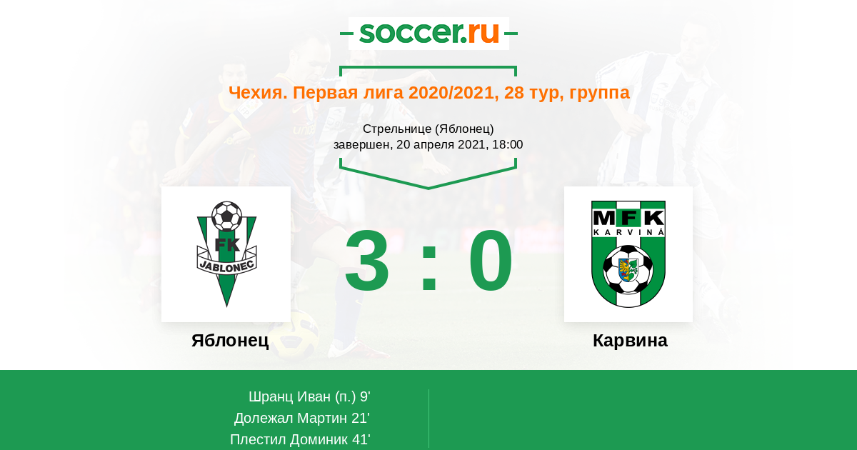 Протокол матча Яблонец против Карвина