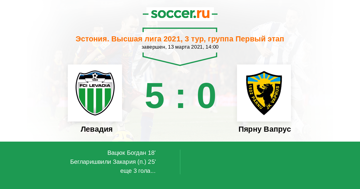 Протокол матча Левадия против Пярну Вапрус