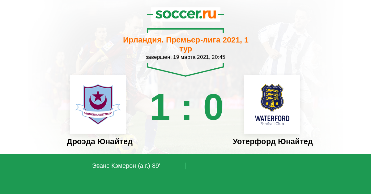 Протокол матча Дроэда Юнайтед против Уотерфорд Юнайтед