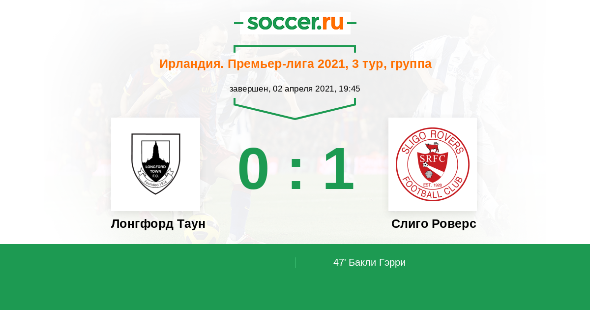 Протокол матча Лонгфорд Таун против Слиго Роверс