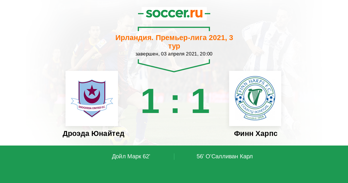 Протокол матча Дроэда Юнайтед против Финн Харпс