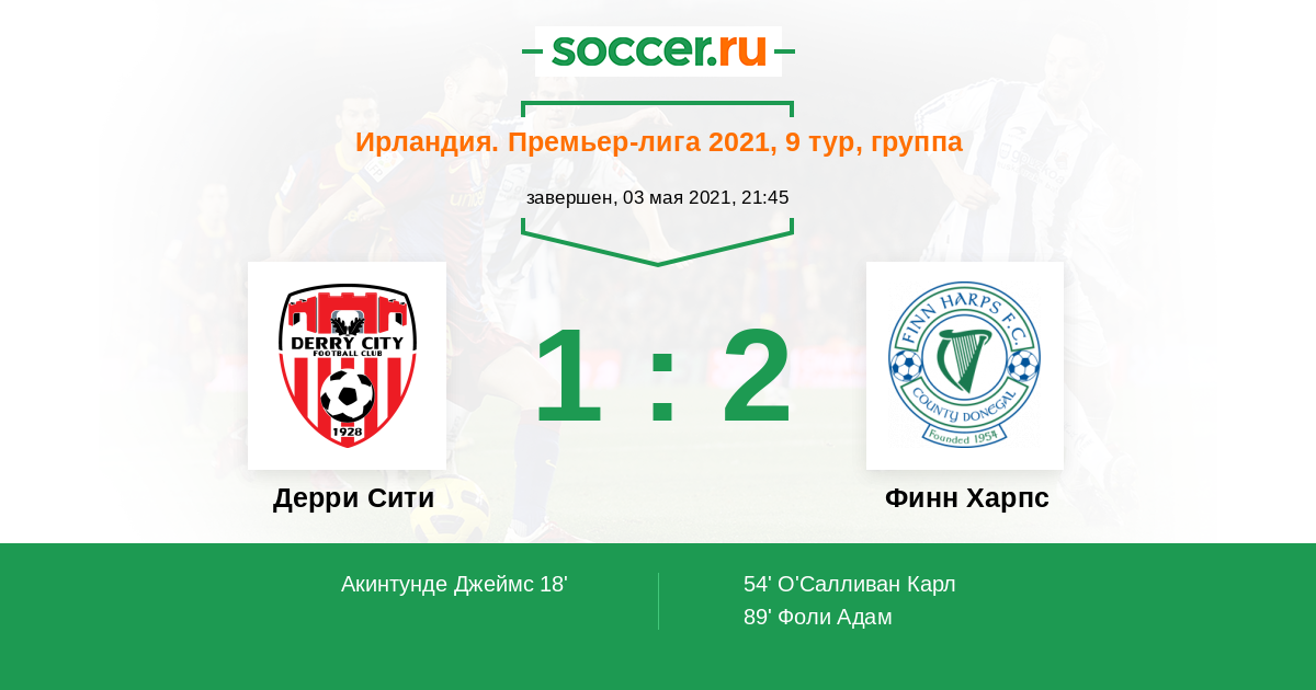 Протокол матча Дерри Сити против Финн Харпс