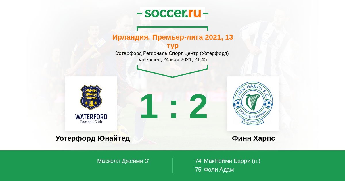 Протокол матча Уотерфорд Юнайтед против Финн Харпс