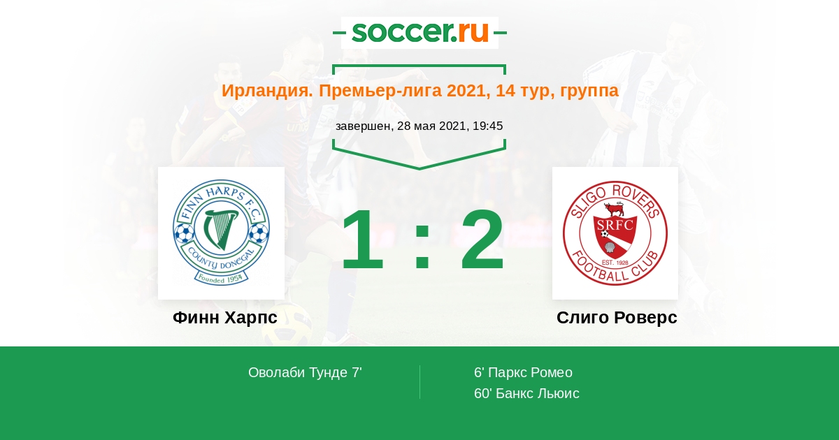 Протокол матча Финн Харпс против Слиго Роверс
