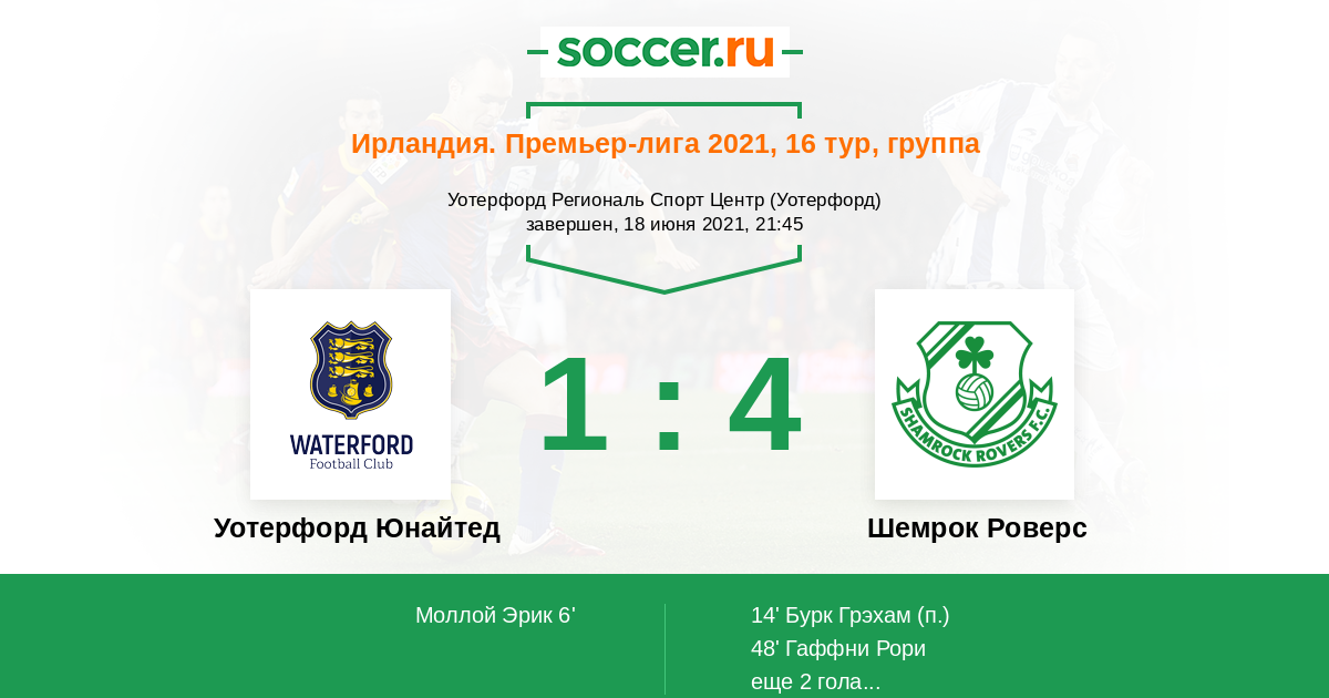 Протокол матча Уотерфорд Юнайтед против Шемрок Роверс