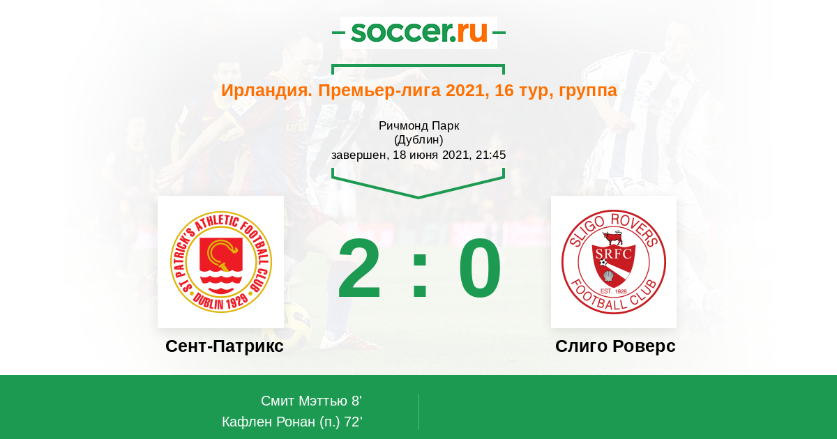 Протокол матча Сент-Патрикс против Слиго Роверс