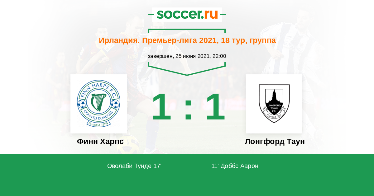 Протокол матча Финн Харпс против Лонгфорд Таун
