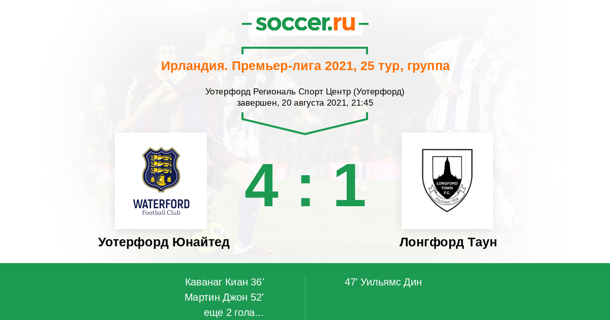 Протокол матча Уотерфорд Юнайтед против Лонгфорд Таун