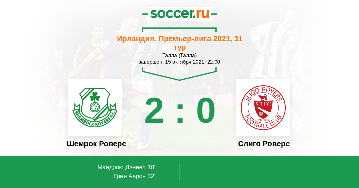 Протокол матча Шемрок Роверс против Слиго Роверс
