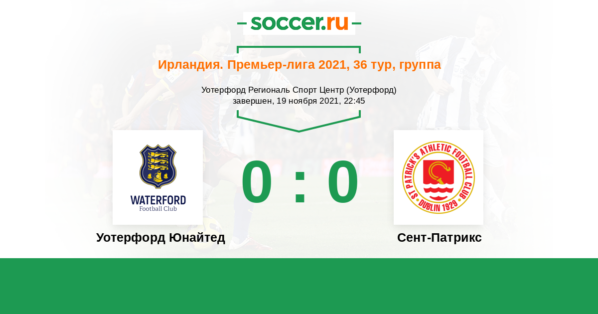 Протокол матча Уотерфорд Юнайтед против Сент-Патрикс