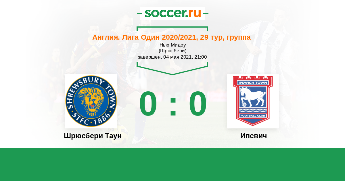 Протокол матча Шрюсбери Таун против Ипсвич