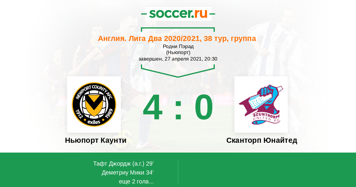 Протокол матча Ньюпорт Каунти против Сканторп Юнайтед