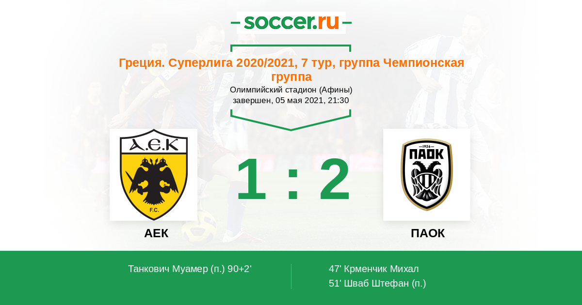 Протокол матча АЕК против ПАОК