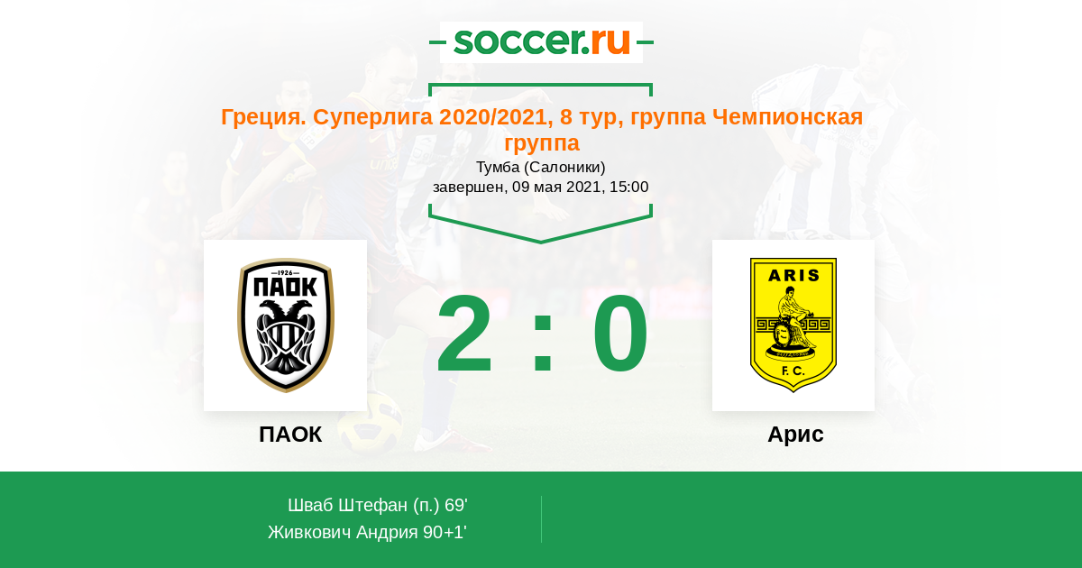 Протокол матча ПАОК против Арис