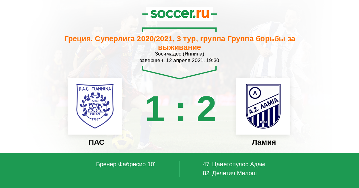 Протокол матча ПАС против Ламия