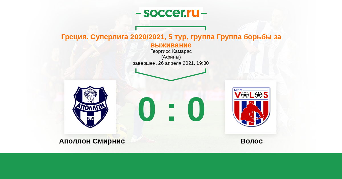 Протокол матча Аполлон Смирнис против Волос