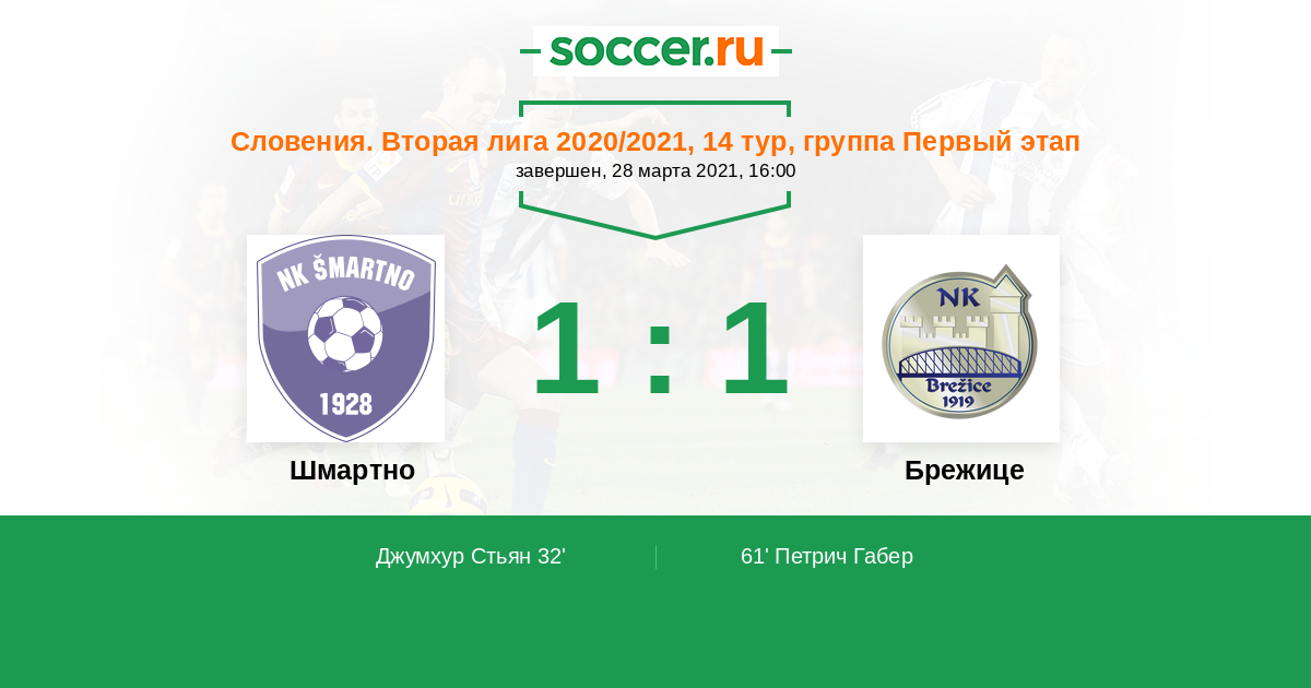Протокол матча Шмартно против Брежице