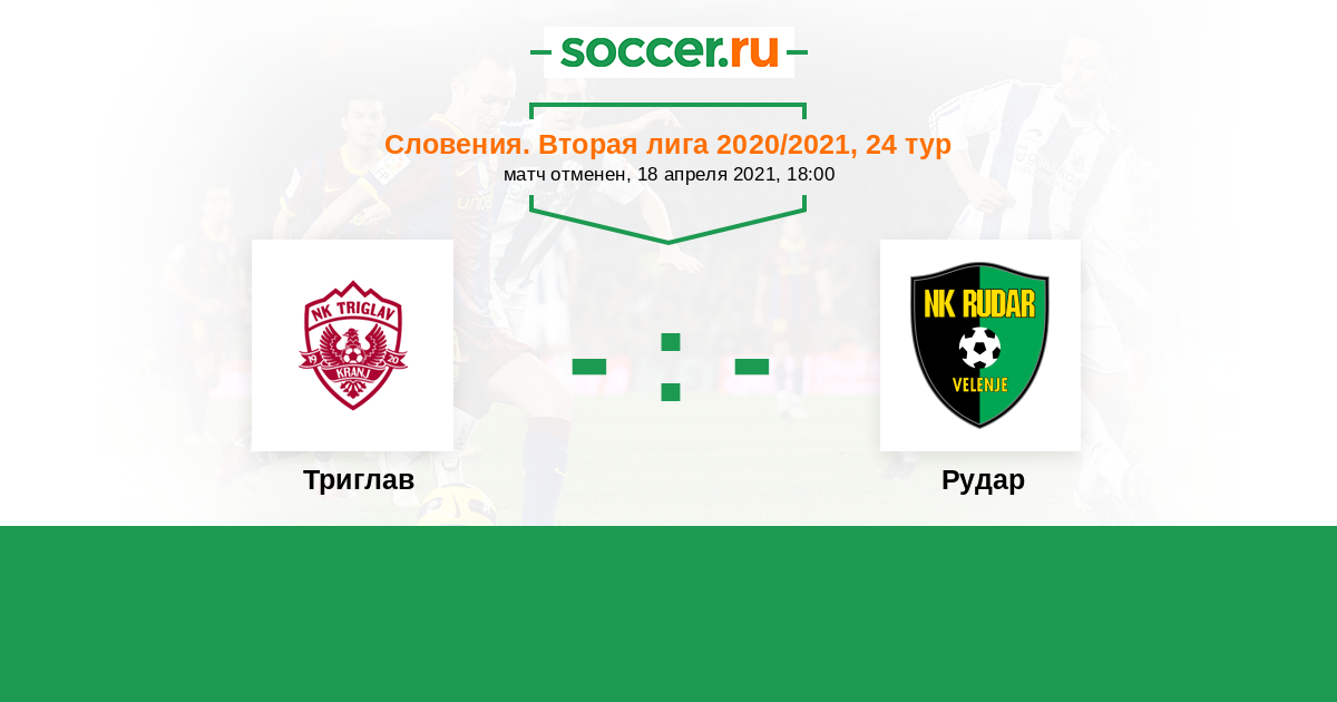Словения. Первая Лига 15.04.2018 Триглав Логотип футбольный клуб Триглав (Крань) 0:2 Логотип футбольный клуб Рудар (Велене) Рудар