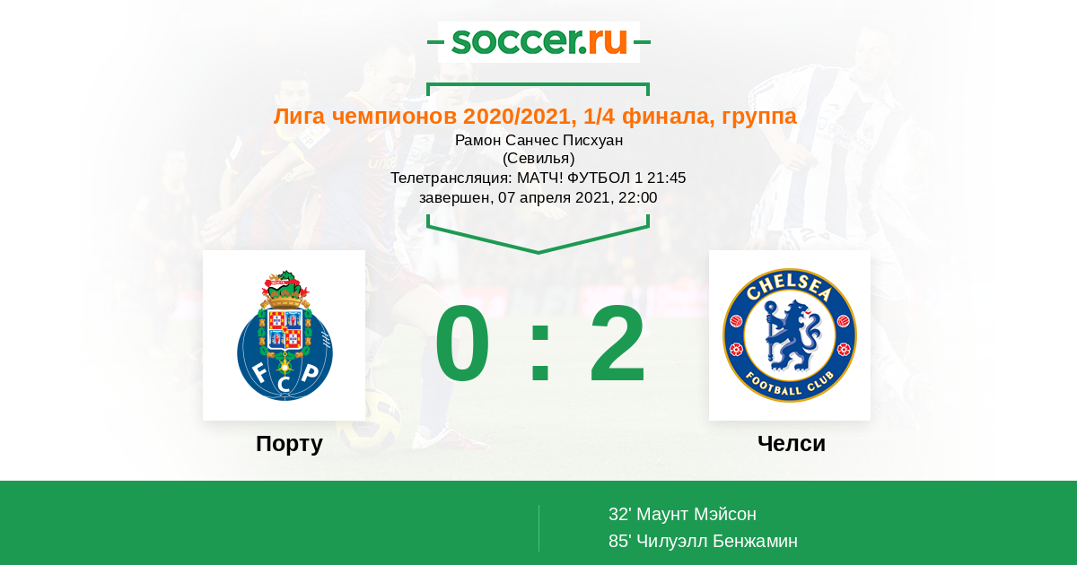 Первый тайм яно за португелами они вели игр уно получили совячка после ошибки обороны.Во втором уже Челси больше диктовал игру за исключеним первых 10 мин.Счет мог быть и 0-3,чутка не фартануло с реализацией.