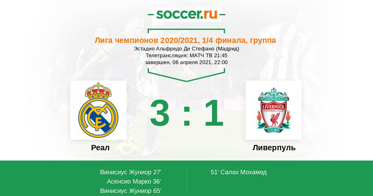 27' (1:0) Винисиус Жуниор (20) (Кроос Тони (8))