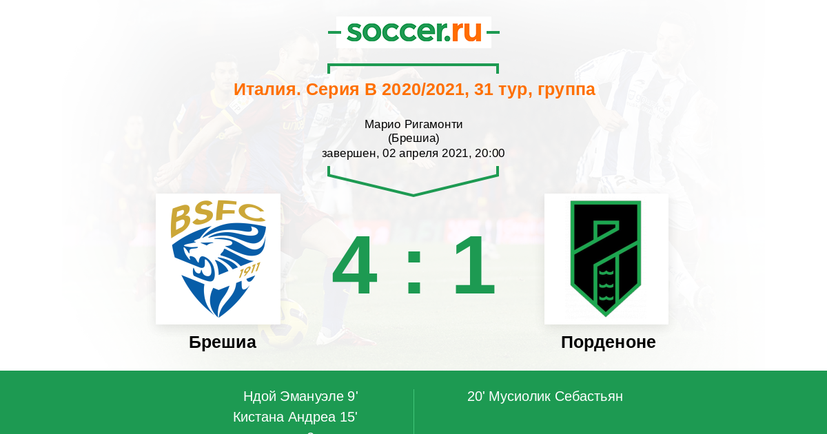 Протокол матча Брешиа против Порденоне