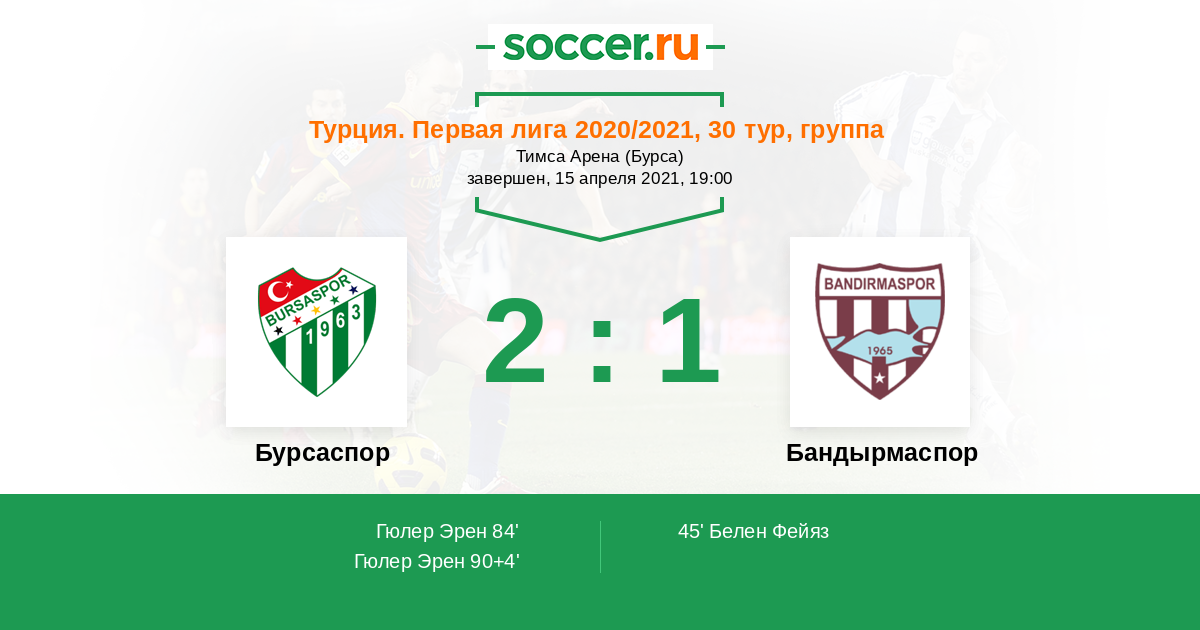 84' (1:1) Гюлер Эрен (75) (Капачак Бурак (7))
