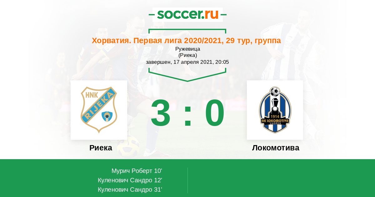 Протокол матча Риека против Локомотива