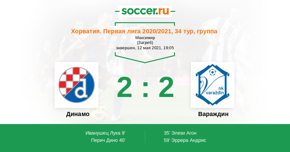 Протокол матча Динамо против Вараждин