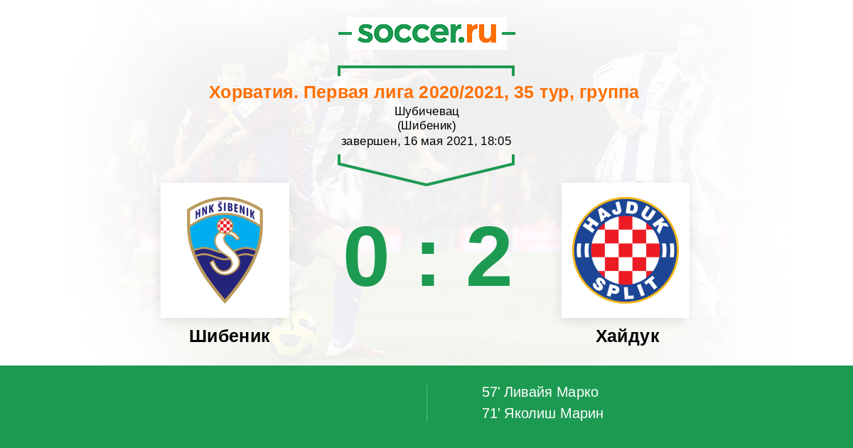 Протокол матча Шибеник против Хайдук