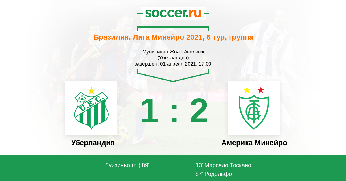 Протокол матча Уберландия против Америка Минейро