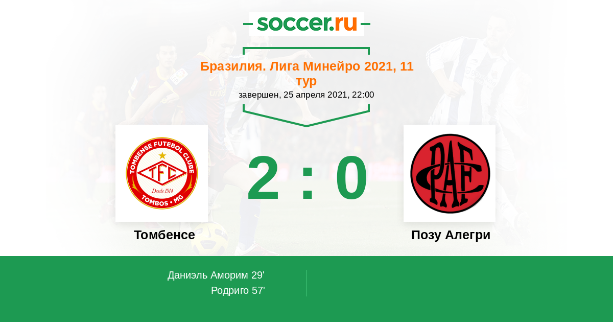 29' (1:0) Даниэль Аморим (9) (Родриго (11))