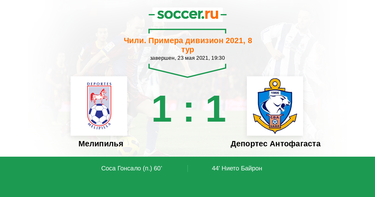Протокол матча Мелипилья против Депортес Антофагаста