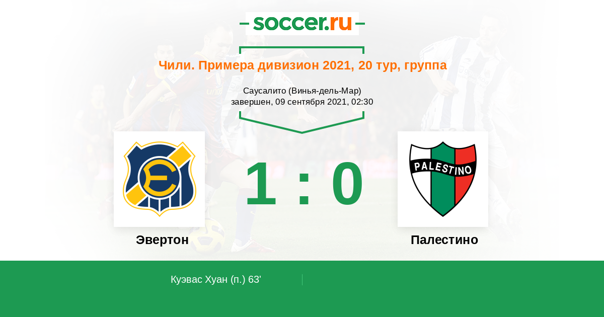 Протокол матча Эвертон против Палестино