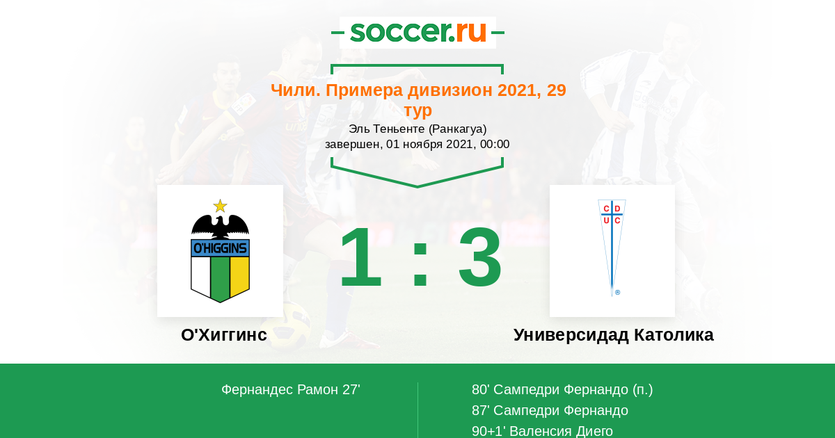 Протокол матча О'Хиггинс против Универсидад Католика