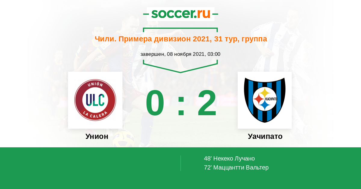 Протокол матча Унион против Уачипато