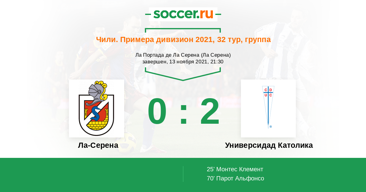 Протокол матча Ла-Серена против Универсидад Католика