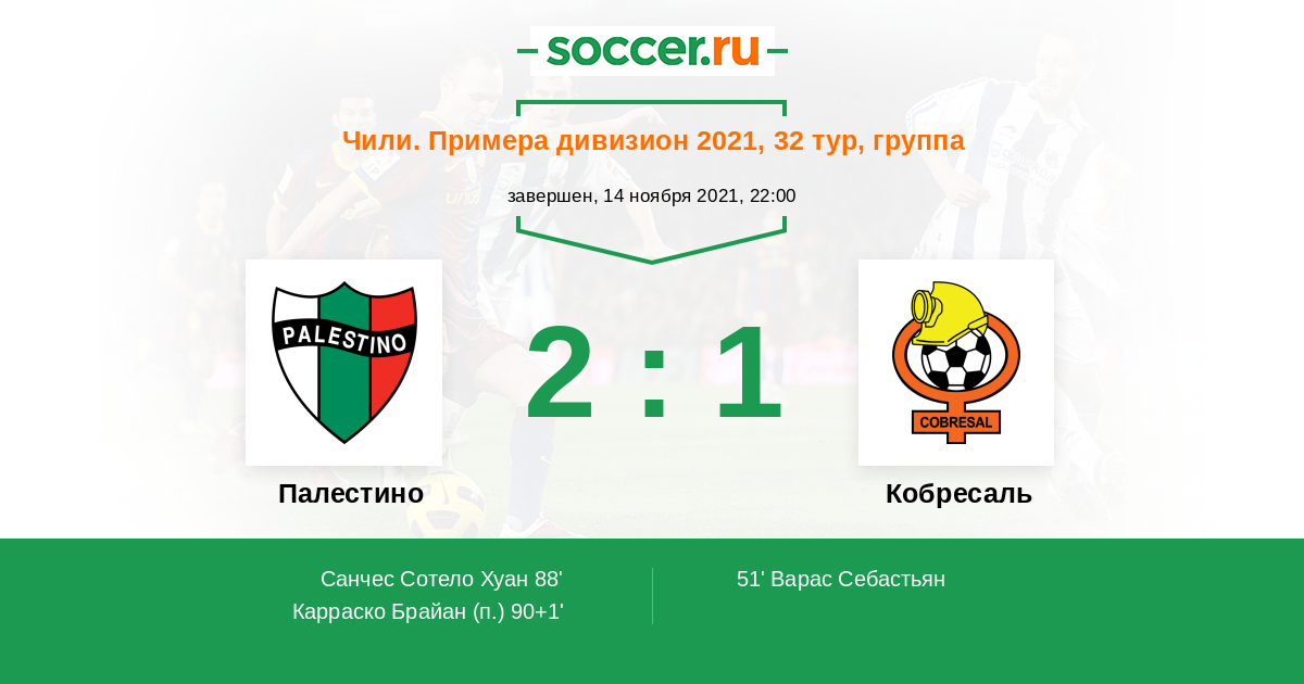 Протокол матча Палестино против Кобресаль
