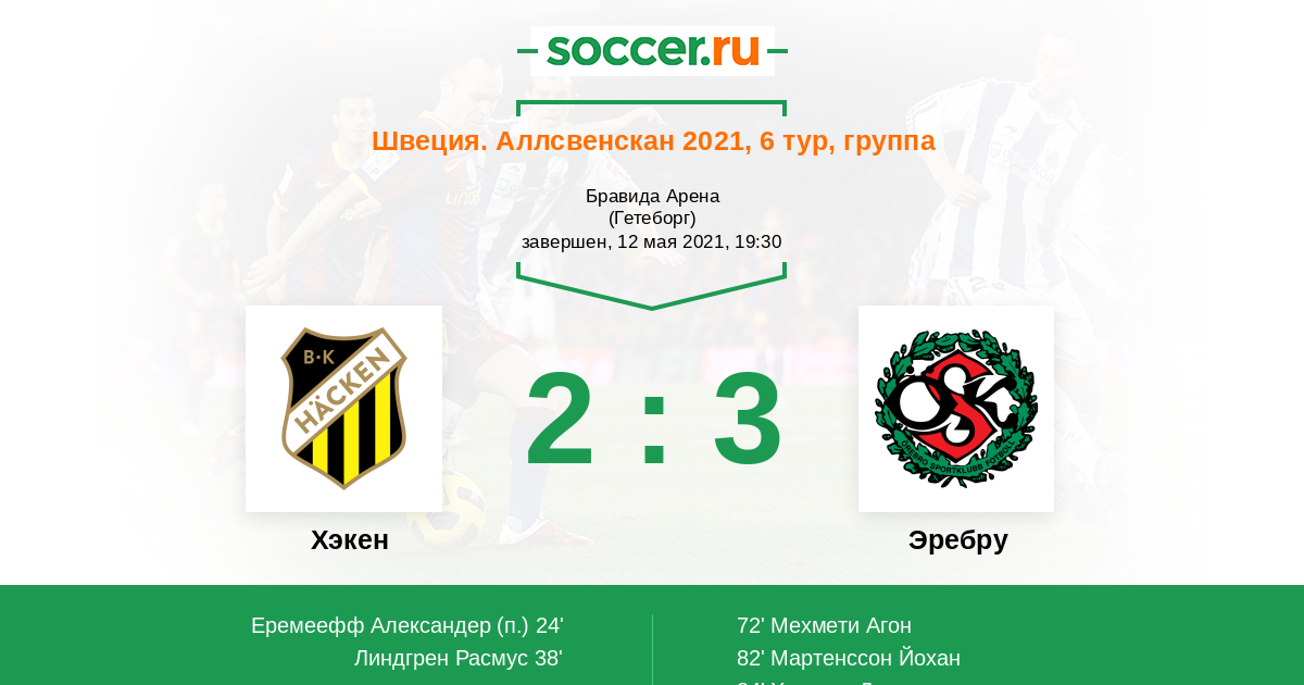Протокол матча Хэкен против Эребру
