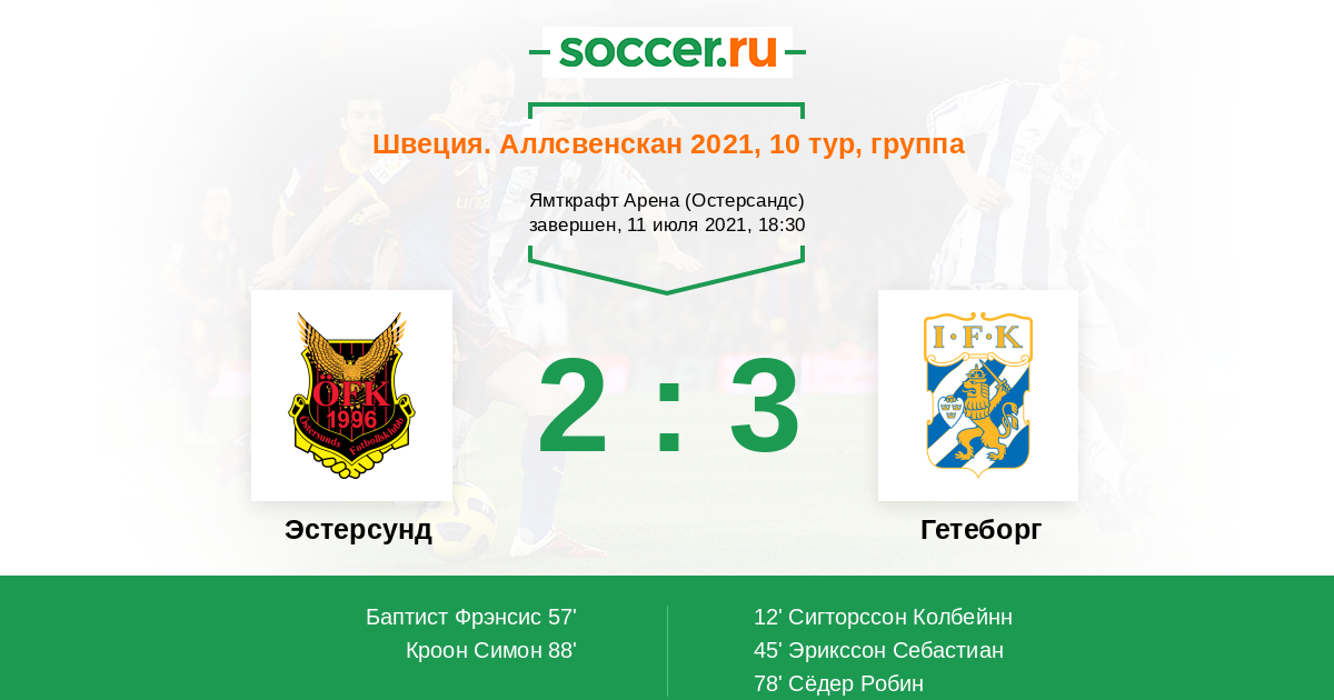 Протокол матча Эстерсунд против Гетеборг