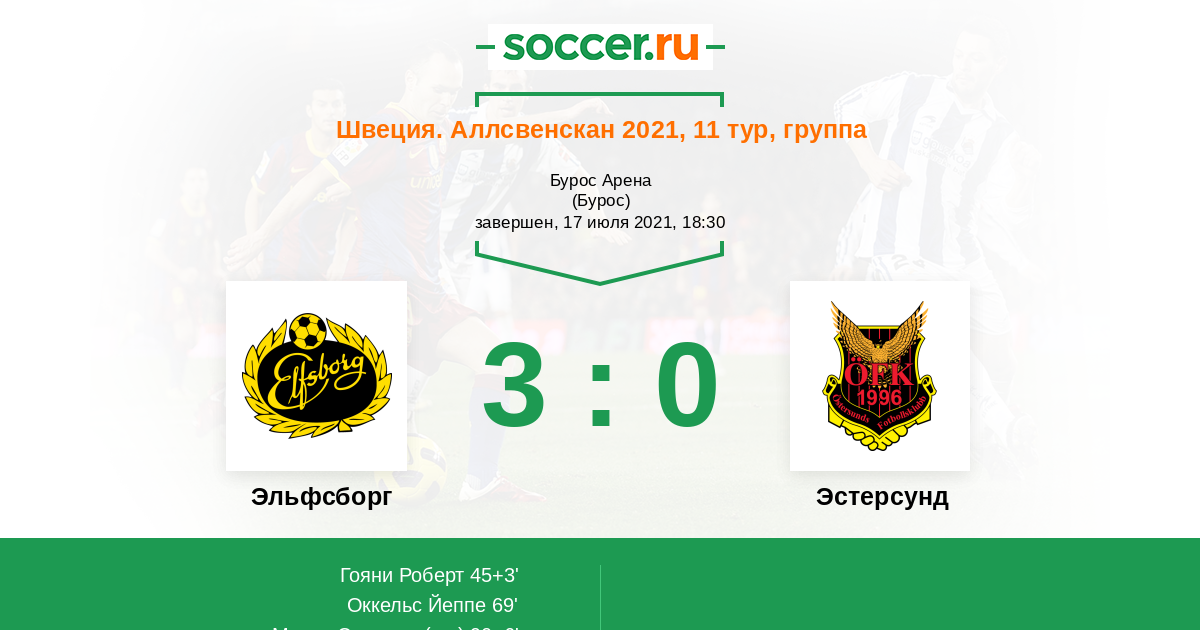 Протокол матча Эльфсборг против Эстерсунд