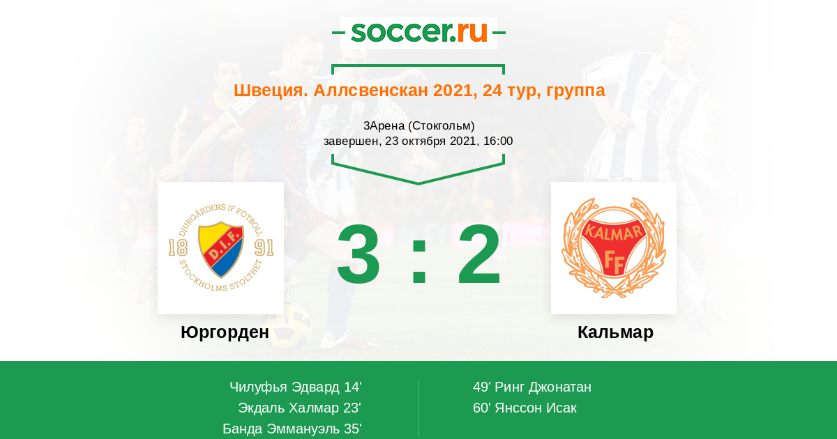 Протокол матча Юргорден против Кальмар