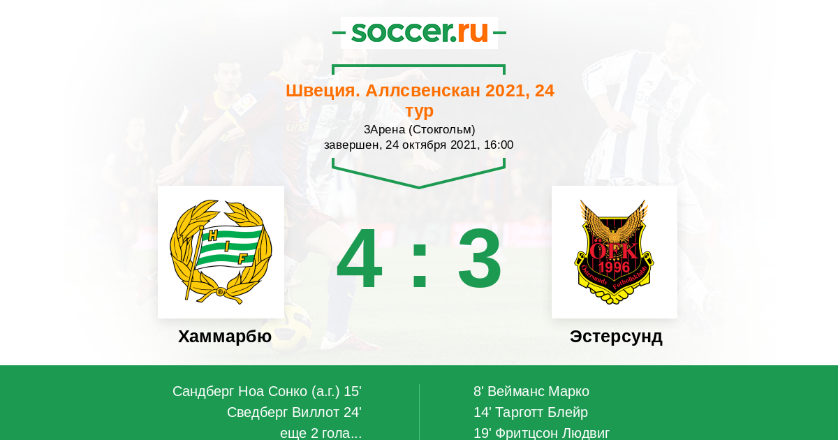 15' (1:2) Автогол Сандберг Ноа Сонко (77)
