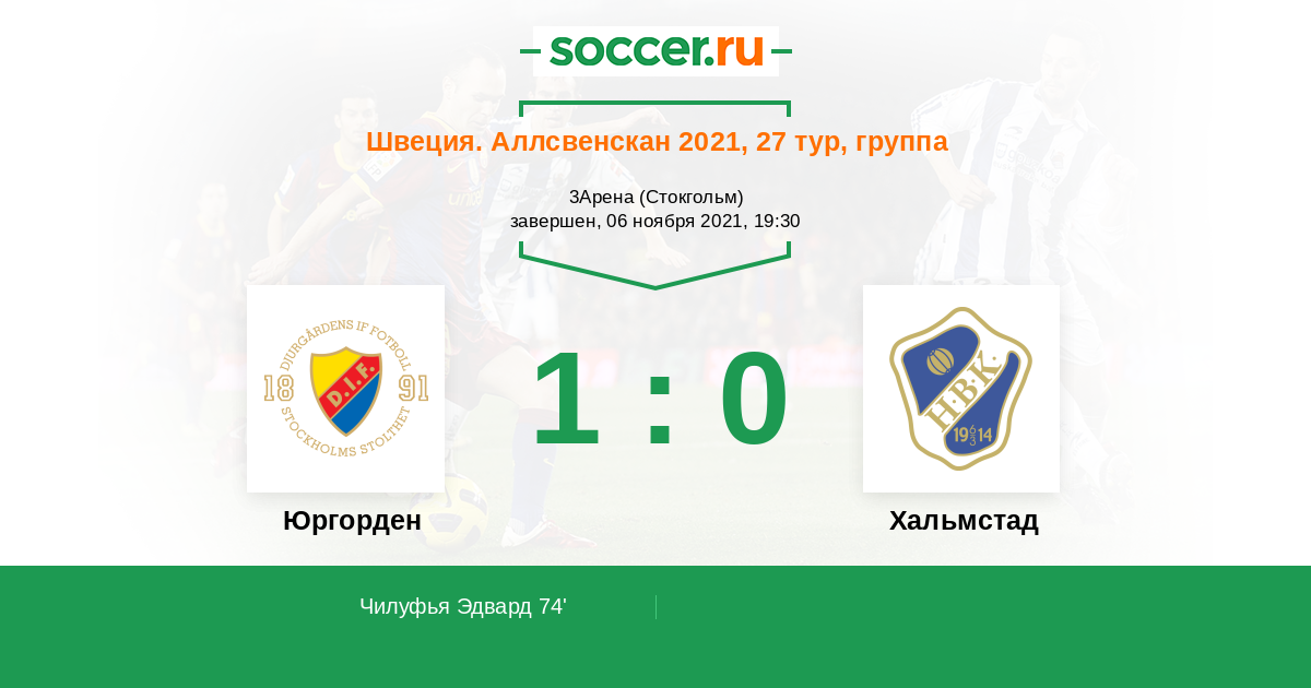 74' (1:0) Чилуфья Эдвард (14) (Эрикссон Магнус (7))